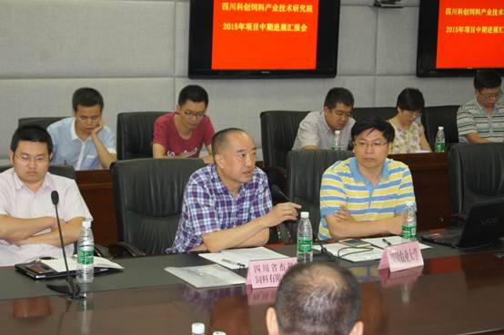 2015年7月28日上午,四川科創飼料產業技術研究院在四川農業大學溫江校區舉行了項目中期進展匯報會。理事長鄺聲耀、院長吳德以及四川農業大學、四川省畜牧科學研究院、四川省畜科飼料有限公司、四川新希望畜牧科技有限公司、通威股份有限公司、四川鐵騎力士實業有限公司、四川乾坤生物科技有限公司七家共建單位項目組負責人、成員共計35人參會。